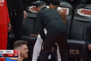 GIF-巴恩斯突破出现受伤 腿不舒服被换下